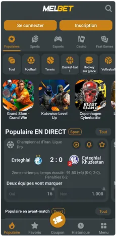 يقدّم MelBet مجموعة واسعة من ألعاب السلوت والكازينو المباشر، كلها متوفرة مباشرة في تطبيق الجوال.